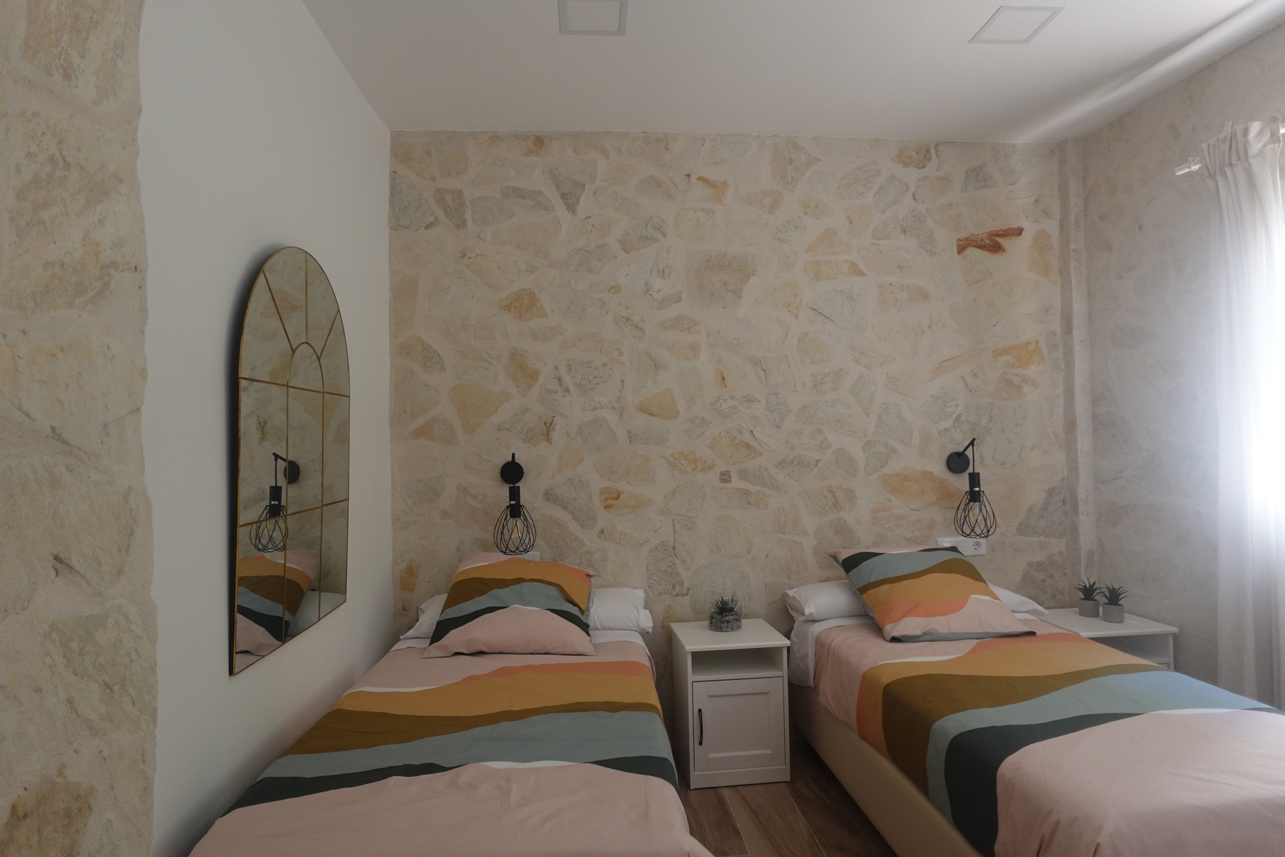Las habitaciones combinan lo rústico con lo moderno: detalles con encanto, camas cómodas, TV de pantalla plana, baño privado con ducha, secador de pelo y amenities. Dispones también de WIFI gratuito para los que necesiten seguir conectados, aunque lo más probable es que acabes desconectando del todo.