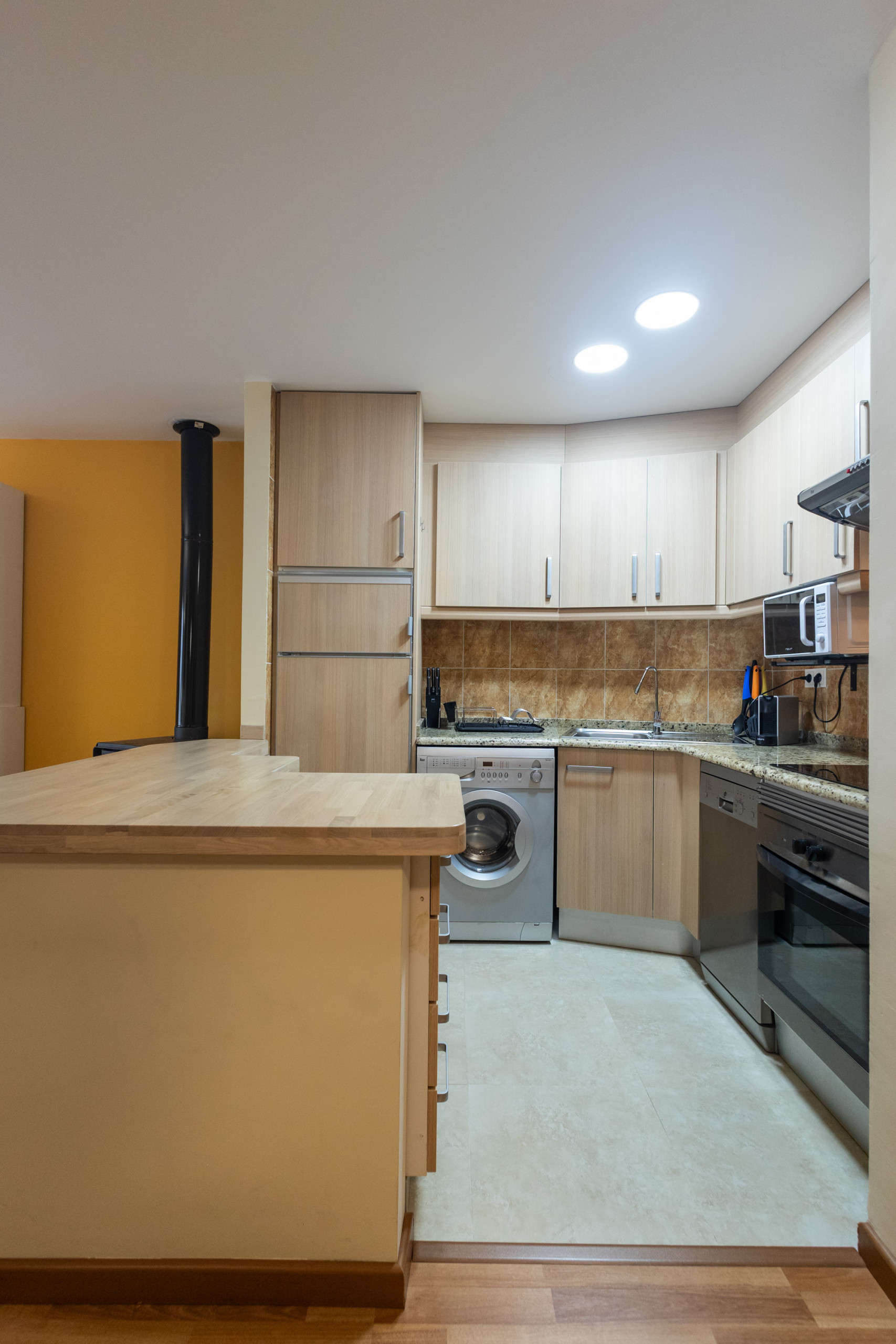 La cocina, está equipada con nevera, microondas, horno, congelador, lavavajillas, vajilla/cubertería, utensilios/cocina y cafetera.